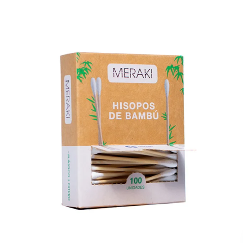Hisopos de Bambú: contiene 100 unidades, madera de bambú y puntas de algodón. Producto biodegradable, vegano y compostable.