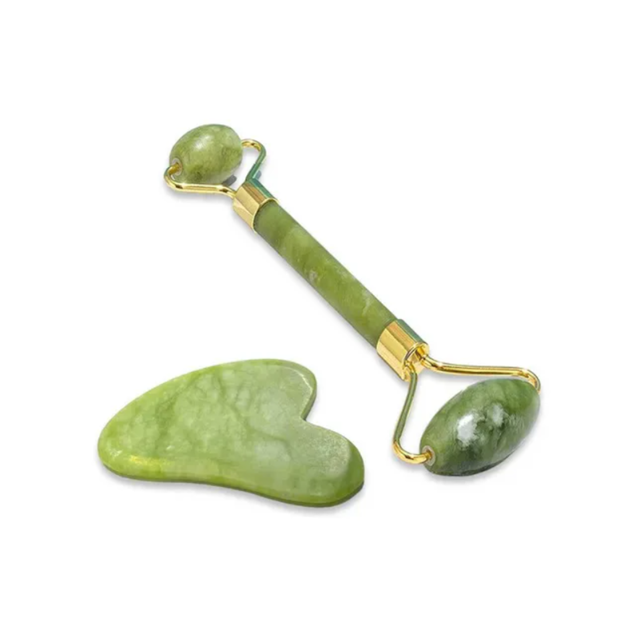Roller y pieda Gua Sha: Es una experiencia de bienestar y cuidado personal. Ideal para un masaje más profundo y focalizado, ayudando a liberar la tensión muscular y a mejorar la elasticidad de la piel.