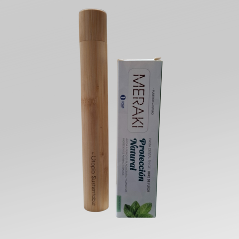Estuche porta cepillo de dientes: 100% Bambú, Biodegradable, cuenta con un orificio superior e inferior para drenar agua.