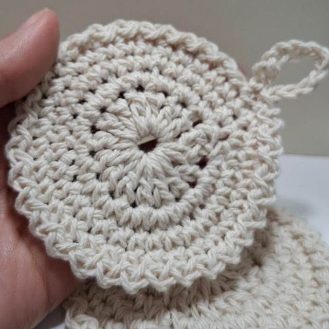 Disco desmaquillante reutilizable: hecho a mano con hilo de algodón. Utilizá, lavá, reutilizá.